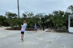 Natural light gleams in the loft bedroom graced by trundle beds and a neutral palette, providing a restful ambiance as you start your day. Ground-level guest bedrooms, including the primary suite with king beds, feature an ensuite and an inviting tropical vibe, sure to inspire you to wake up and explore what Exuma has to offer. Freshen up after a long day at the beach in the bathroom adorned with a vanity and shower accentuated by gorgeous tiles. A gas firepit with sandbar views at low tide, a large deck, and a covered porch, complete with seating areas, will inspire you to take in the morning sun the moment you wake up. As a bonus, you’ll have a private dock, an in-house gym, a driveway shooting hoop, a suspension net, a rope swing, a water trampoline, and other water activity essentials.