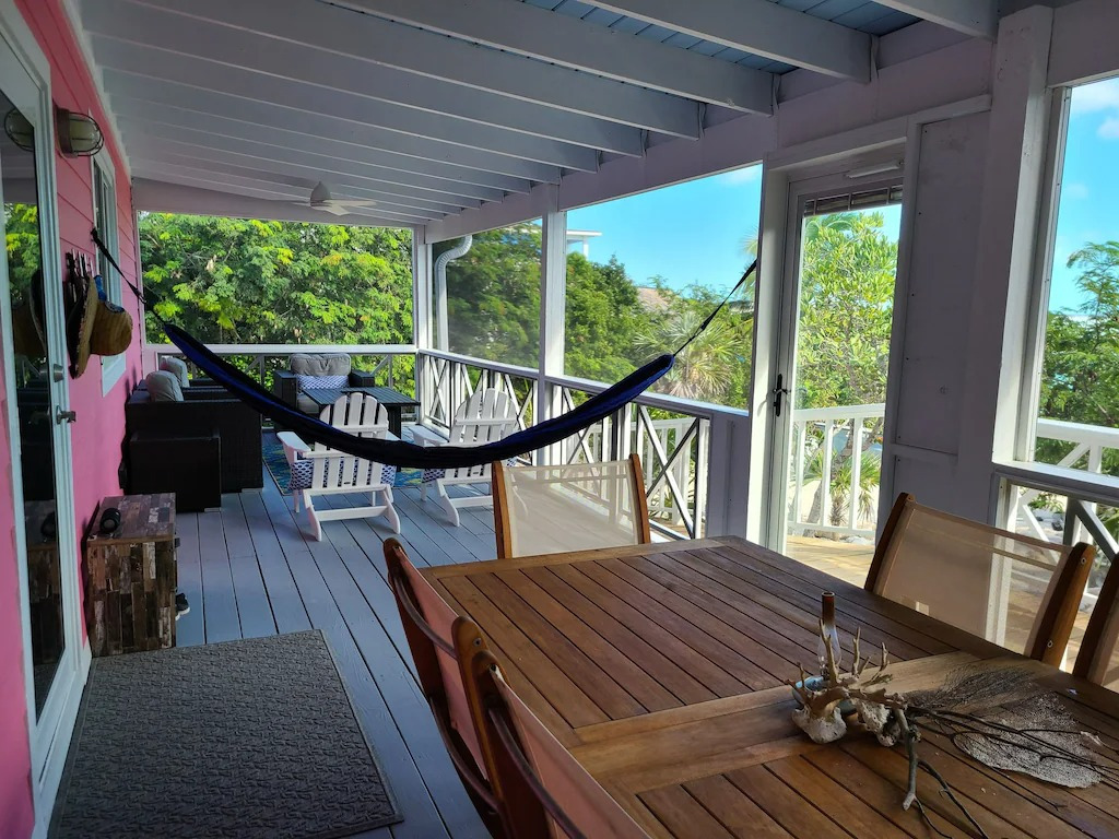 Let Poco a Poco transform your vacation from ordinary to extraordinary! This incredible 4-bedroom, 4.5-bath Exuma waterfront vacation rental with a private beach and an optional extra cottage offers stunning views, luxurious amenities, and plenty of space for you and your family. A covered wrap-around porch with several seating spaces and 180-degree panoramas ushers to the air-conditioned open-concept living area, where natural light filters through the multiple windows and slider door, allowing a comfortable setting to ease off the day.