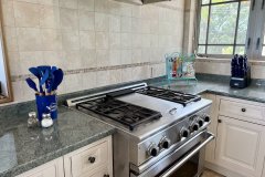 The spacious kitchen features a beautiful tiled backsplash and granite countertops with plenty of space for prepping. Modern conveniences such as a refrigerator, stovetop, microwave, and coffee and tea maker are at your disposal. The kitchen also features a large breakfast bar that can seat up to 6 people.