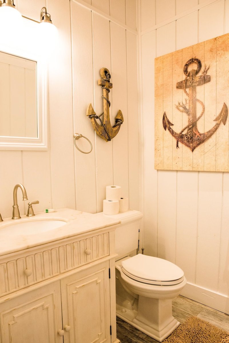 The beach house has a single-story layout. Adorned with tasteful cottage-core furnishings in soft and subtle hues, every corner of the home radiates a warm and cozy atmosphere. Immerse yourself in the embrace of rustic elegance, with furniture and decor crafted from natural materials such as wood, accentuating the home’s connection to nature.