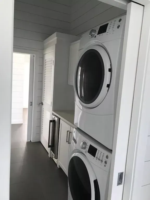 The indoor space connects seamlessly to the outdoors as a wrap-around deck is accessible from the living area, dining, and kitchen through multiple big glass sliding doors. You can enjoy the ocean views while lounging around in the living room, enjoying a nice dinner, or even cooking in the kitchen.