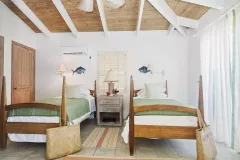 - 1 double twin room with 2 single beds, ceiling fan, AC, and vaulted ceiling with exposed beams