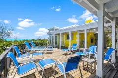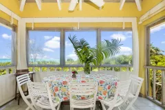 The arching vaulted ceilings in natural wood and white give the entire home an open and breezy feel that perfectly complements the beachy furniture and colorful prints. Enjoy panoramic views of the crystal blue sea from the many-windowed interior or out on the covered deck.